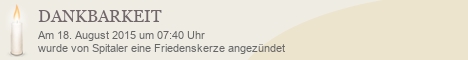 Diese Friedenskerze wurde bisher 1.595 mal besucht. Es wurde bisher kein Kommentar verfasst.