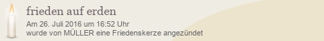 Diese Friedenskerze wurde bisher 1.841 mal besucht. Es wurde bisher kein Kommentar verfasst.