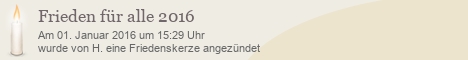 Diese Friedenskerze wurde bisher 1.927 mal besucht. Es wurde bisher kein Kommentar verfasst.