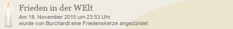 Diese Friedenskerze wurde bisher 1.902 mal besucht. Es wurde bisher kein Kommentar verfasst.