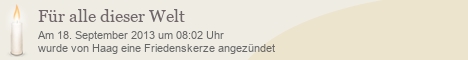 Diese Friedenskerze wurde bisher 1.771 mal besucht. Es wurde bisher kein Kommentar verfasst.