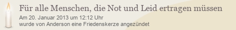 Diese Friedenskerze wurde bisher 2.050 mal besucht. Es wurde bisher kein Kommentar verfasst.