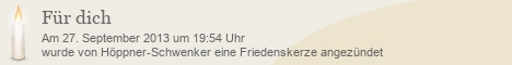 Nutzen Sie den Code, um den Banner zu Ihre Kerze in einem Forum oder auf Ihrer Webseite veröffentlichen und mit anderen teilen.