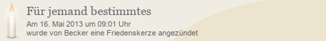 Nutzen Sie den Code, um den Banner zu Ihre Kerze in einem Forum oder auf Ihrer Webseite veröffentlichen und mit anderen teilen.