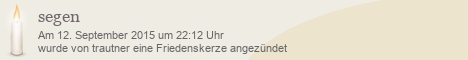 Diese Friedenskerze wurde bisher 1.537 mal besucht. Es wurde bisher kein Kommentar verfasst.
