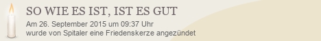 Diese Friedenskerze wurde bisher 1.545 mal besucht. Es wurde bisher kein Kommentar verfasst.